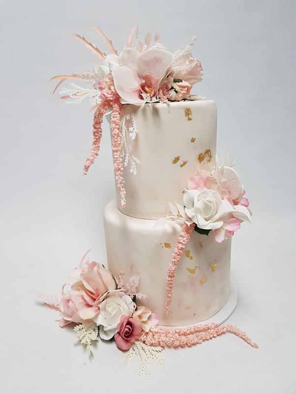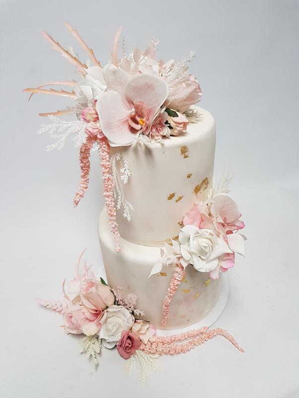 This set includes a topper, base florals and shelf florals to sit inbetween cake tiers.