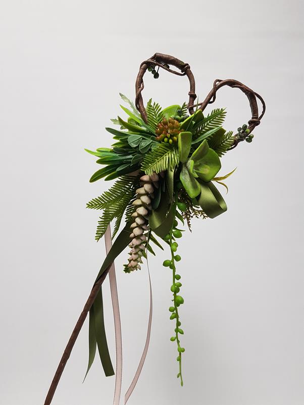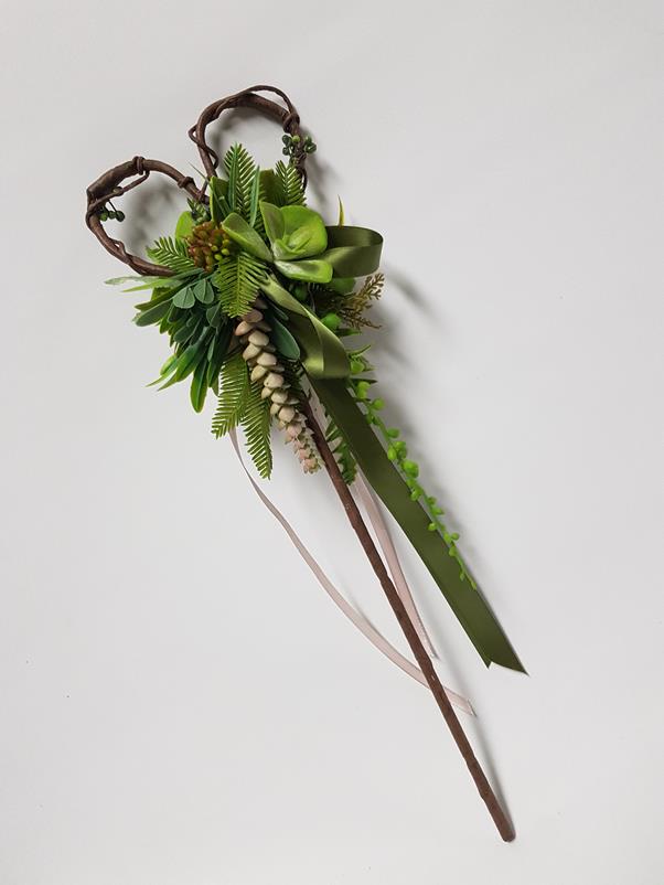 Made with lush ferns, succulents, berries and vivid green leaves, this wand looks as if it has come straight from a fairytale!