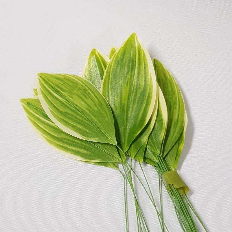 Pack of 24 green leaf stems. These Leaf picks are wired and can be bent into a realistic shape. Great for cake decorating or DIY projects.