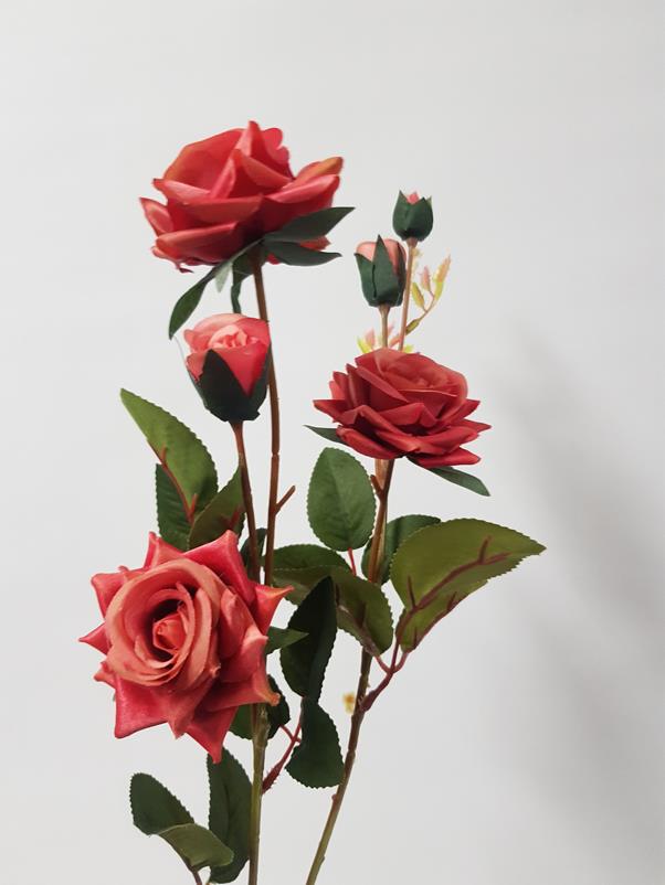 Easily maintained this gorgeous artificial Rose Spray stem will bring lasting beauty into your home or office. Create your own flower arrangement mixing with other stems or place in a decorative vase on its own. This Rose Spray looks amazingly real and has 6 small rose heads varied in size.