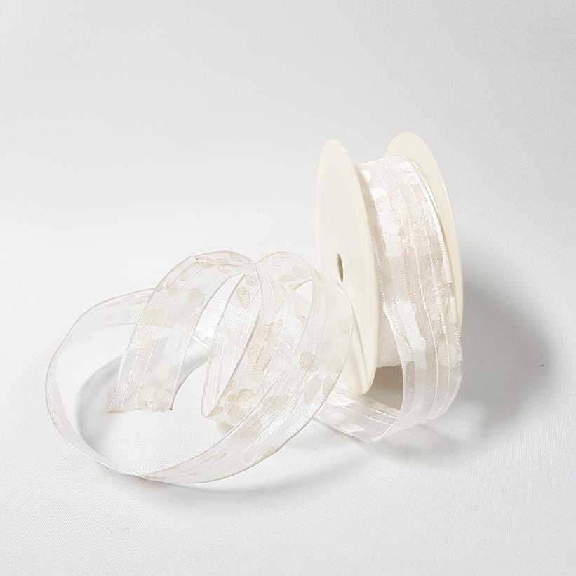 25mm wide x 20mtr roll of Organza with white daisy print wired edge