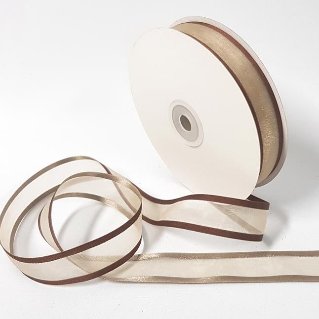 Organza Ribbon Two toned 22mm Brown/Toffee