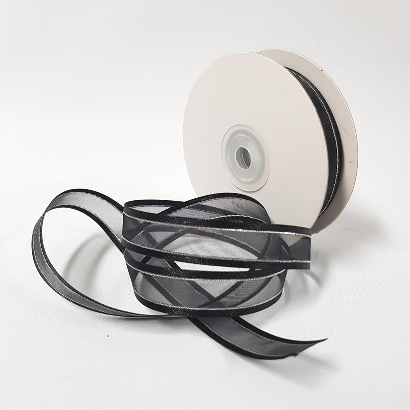 Organza Satin Edge Ribbon silver Thread 15mm Black