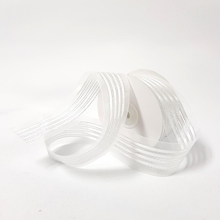 38mm Width x 23 mtr roll Satin and sheer Ribbon with silver thread