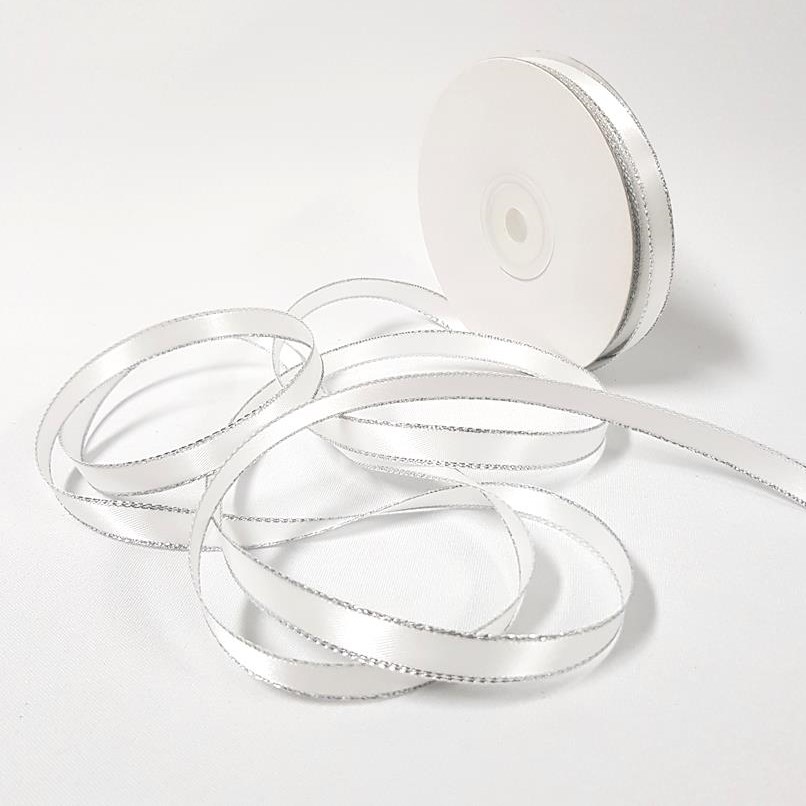 Satin Double sided Silver Edge 10mm White