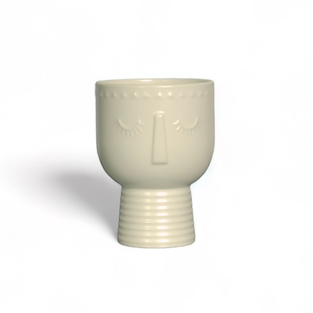 This cute vase with a face is modern in style and rounded in shape. perfect for creating modern flower arrangements.