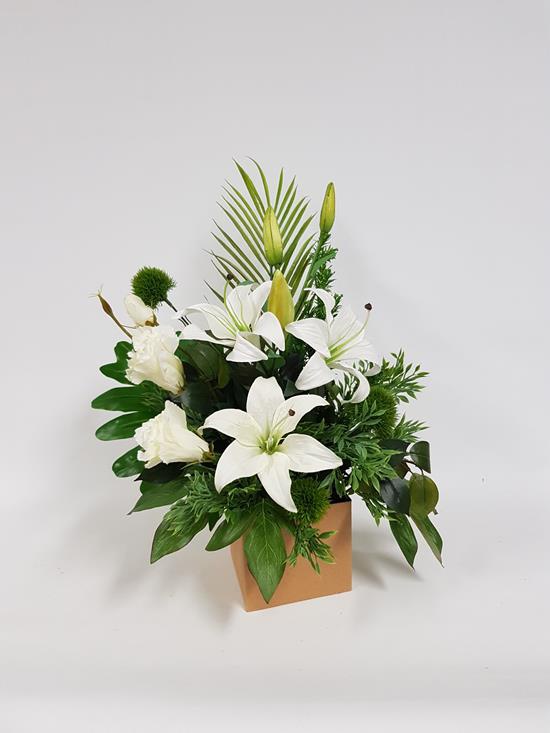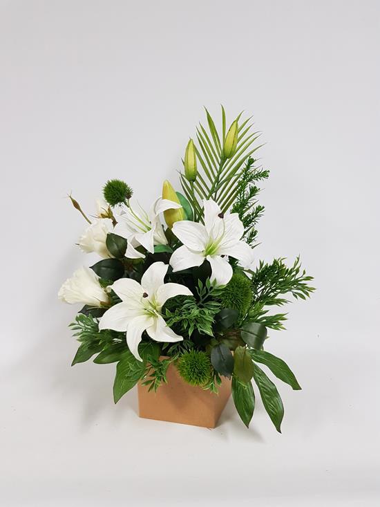 A mix of Lilies, Lisianthus and lush tropical greenery. Perfectly displayed in a Gift Box.