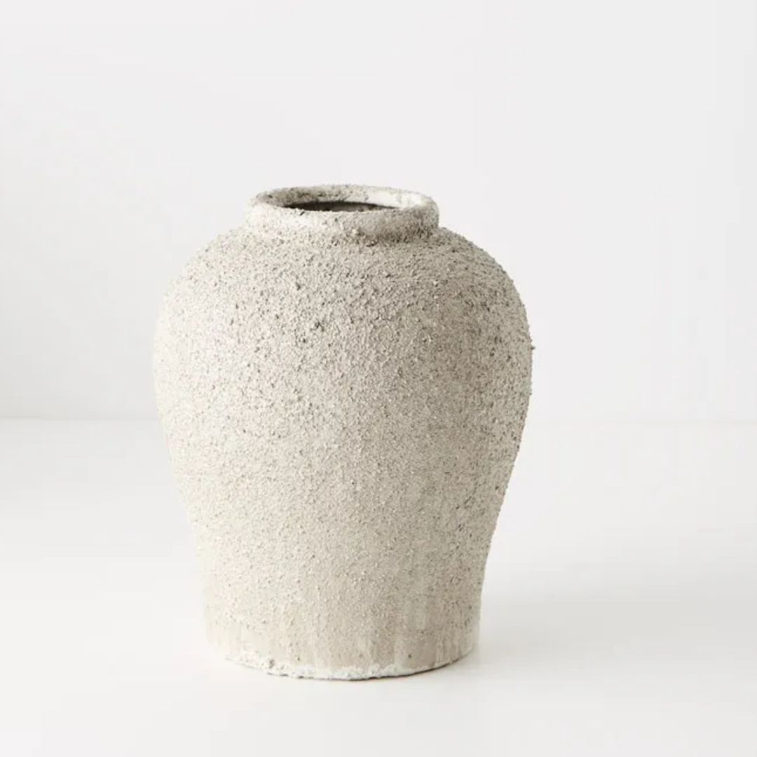Measuring 19cm high and 16cm in diameter, the Halcyon Vase fits seamlessly into contemporary, rustic, or minimalist spaces, adding depth and understated elegance. Its neutral grey finish pairs beautifully with both light and dark interiors, creating a timeless balance of texture and tone.