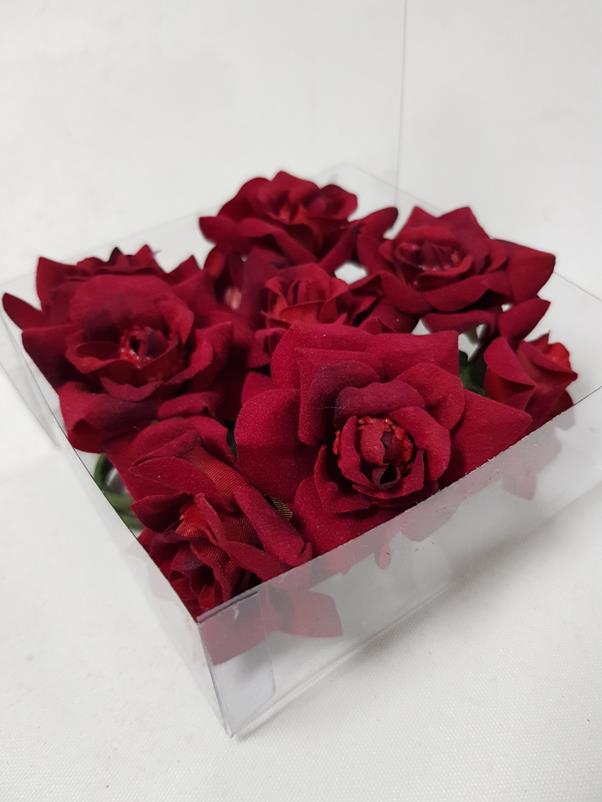 Velvet Mini Rose Heads Red