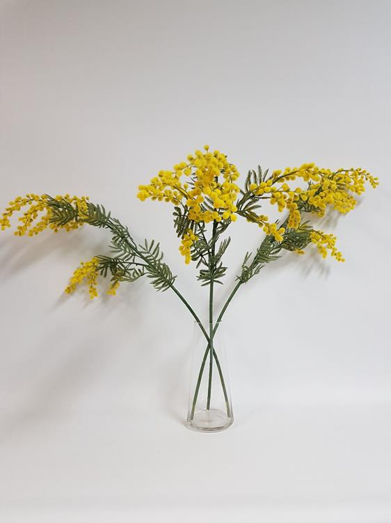 This vibrant wattle spray has three full branches of yellow mimosa flower.